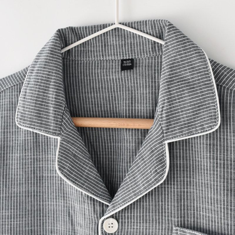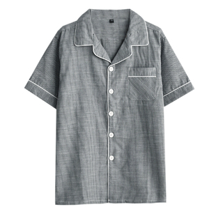 男夏季 长裤 纯棉纱布薄款 T恤短裤 家居服上衣 短袖 无印单件睡衣上装
