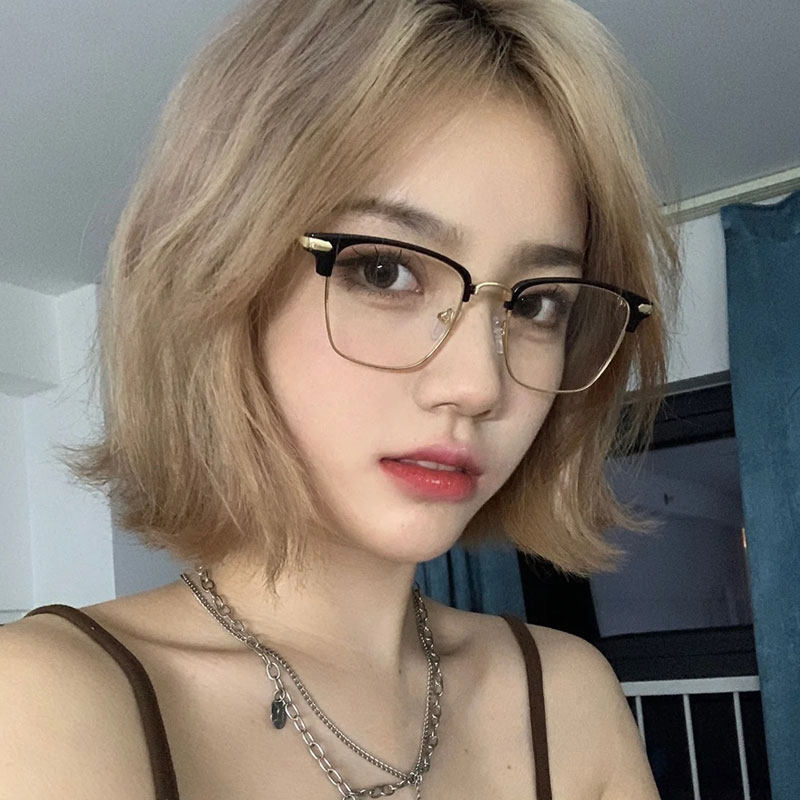 复古半框眼镜框女高级感可配度数近视男士 斯文败类大脸显瘦防蓝光