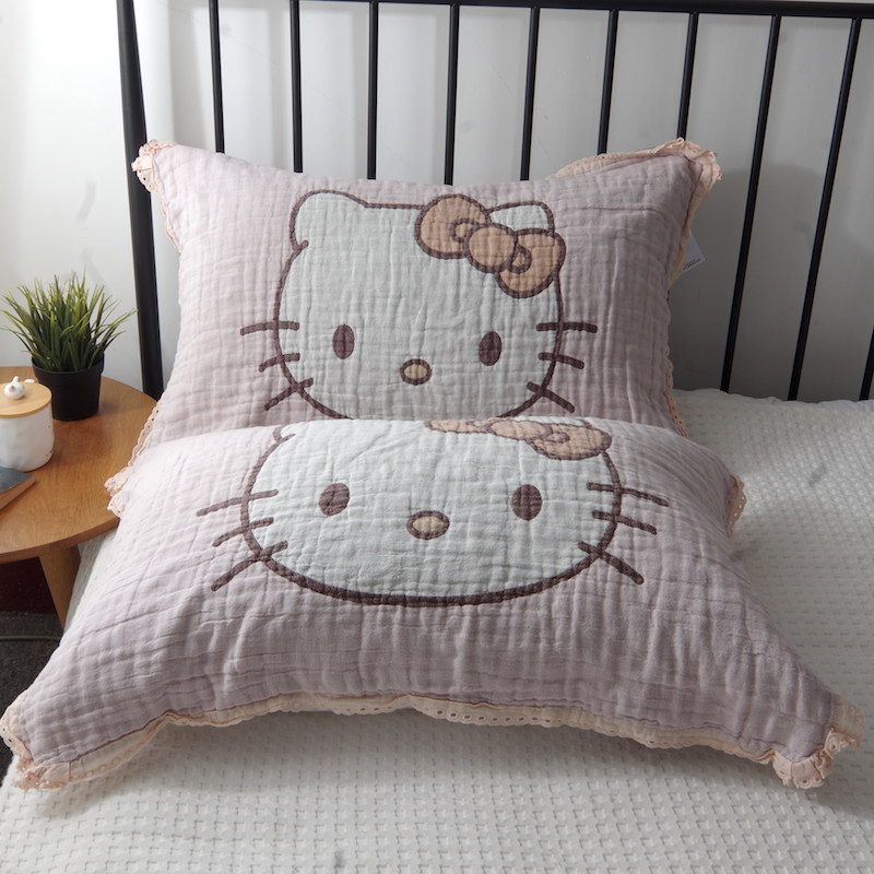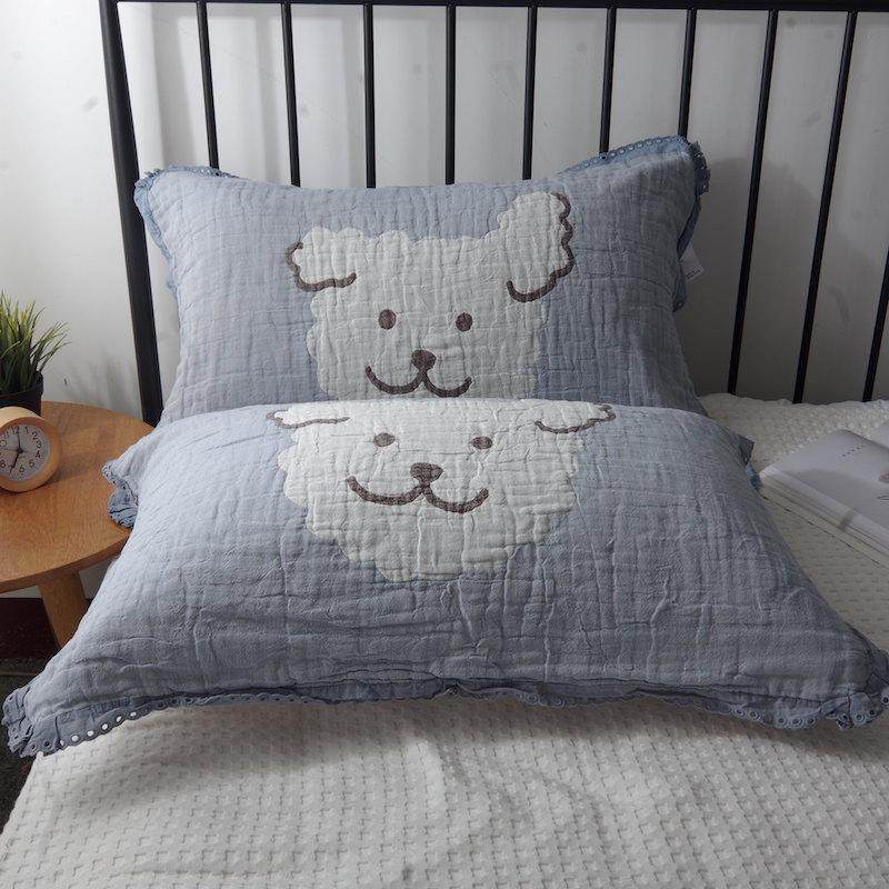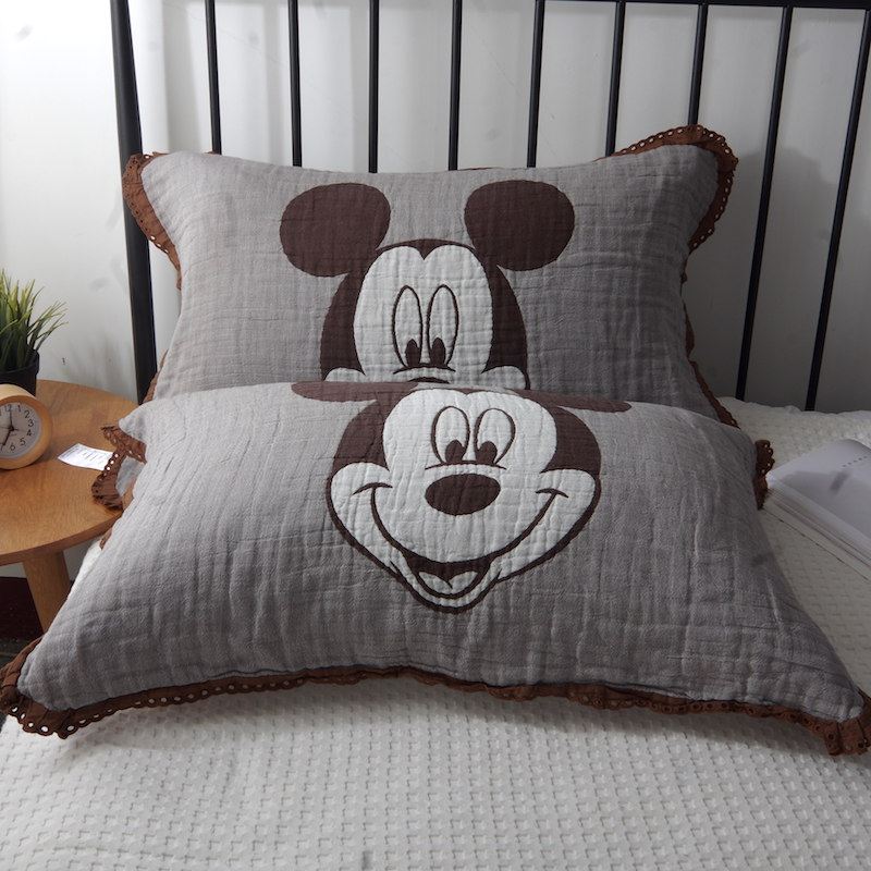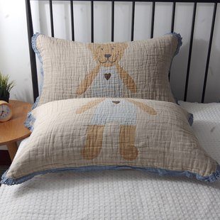 韩式 可爱卡通纯棉纱布枕头巾全棉情侣家用成人盖巾 花边枕巾一对装