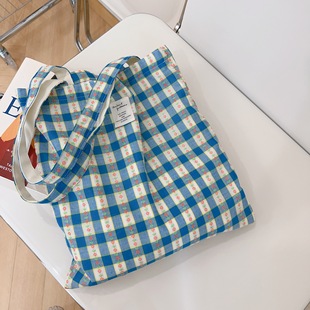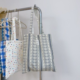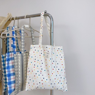 单肩包棉布袋格子波点帆布包女大容量手拎包休闲逛街上班通勤包