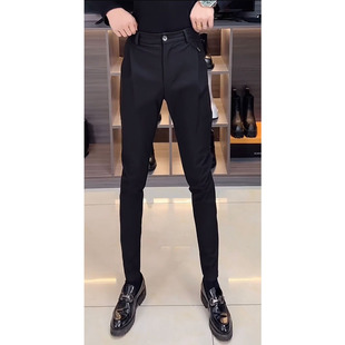 款 休闲长裤 高级感垂顺西裤 隐藏松紧腰直筒微锥西装 子 男士 罗蒙秋季