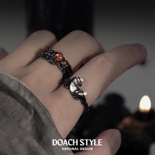 红日白月情侣对戒纯银戒指女小众设计轻奢高级感520送女朋友礼物
