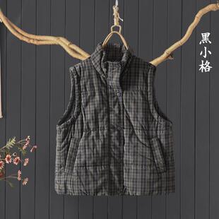 文艺宽松100%棉马甲无袖 宽松夹棉加厚格子马夹女 棉衣棉服背心冬季