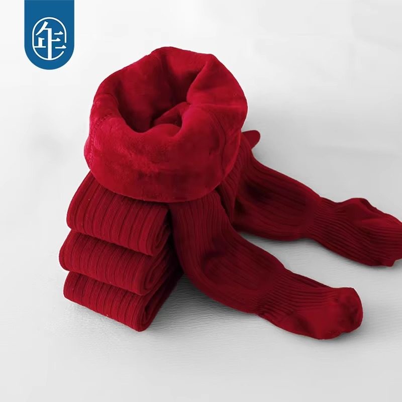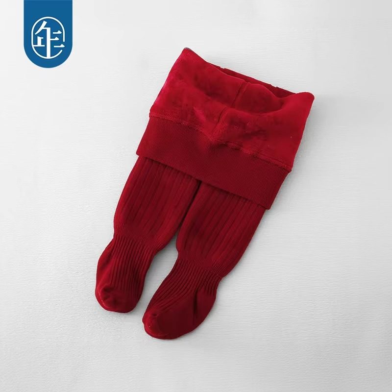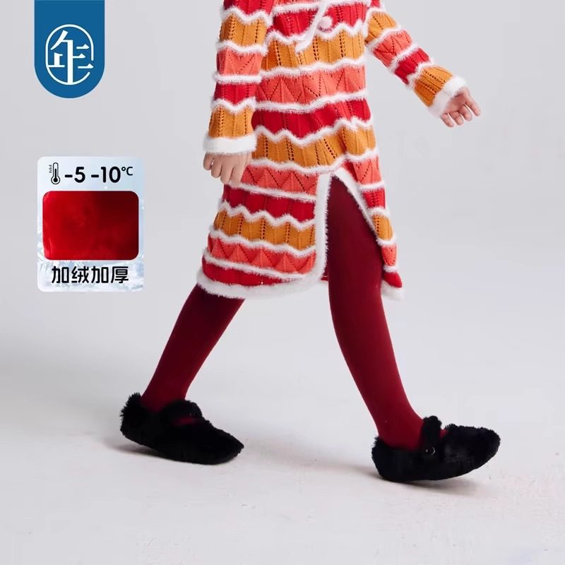 年衣童装 儿童百搭打底加绒保暖袜子 女童袜子连体袜2024冬新款