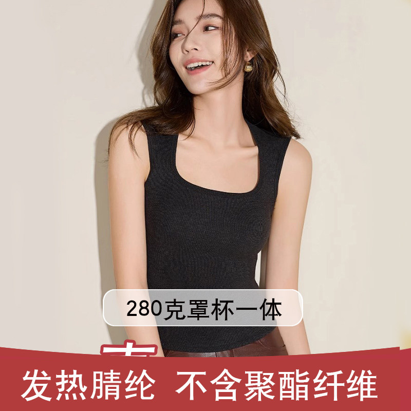 280g带胸垫保暖内衣女磨绒自发热吊带背心打底秋冬季 加绒肌底衣女