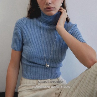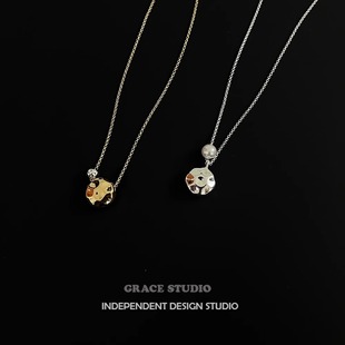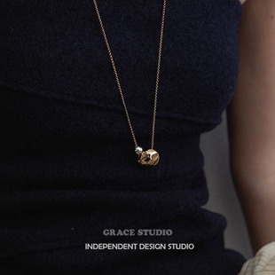 项链高级感简约休闲叠戴毛衣链 小众设计金银撞色珍珠吊坠长款