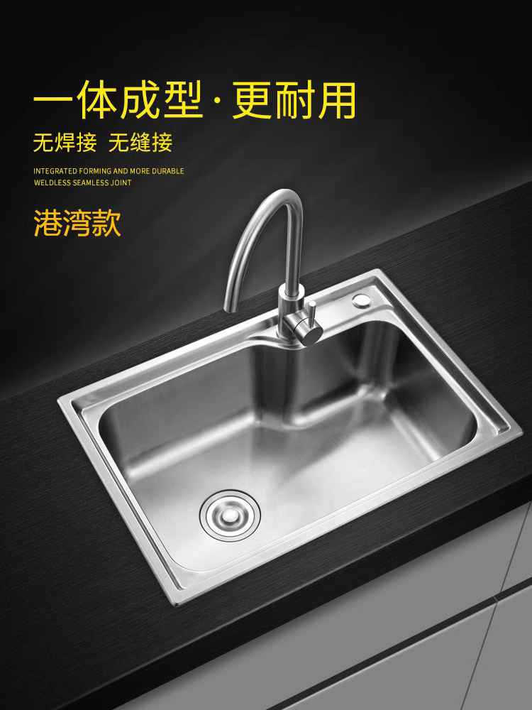 摩恩不锈钢多尺寸大单槽厨房台下小洗菜盆水槽单品洗碗槽 自营