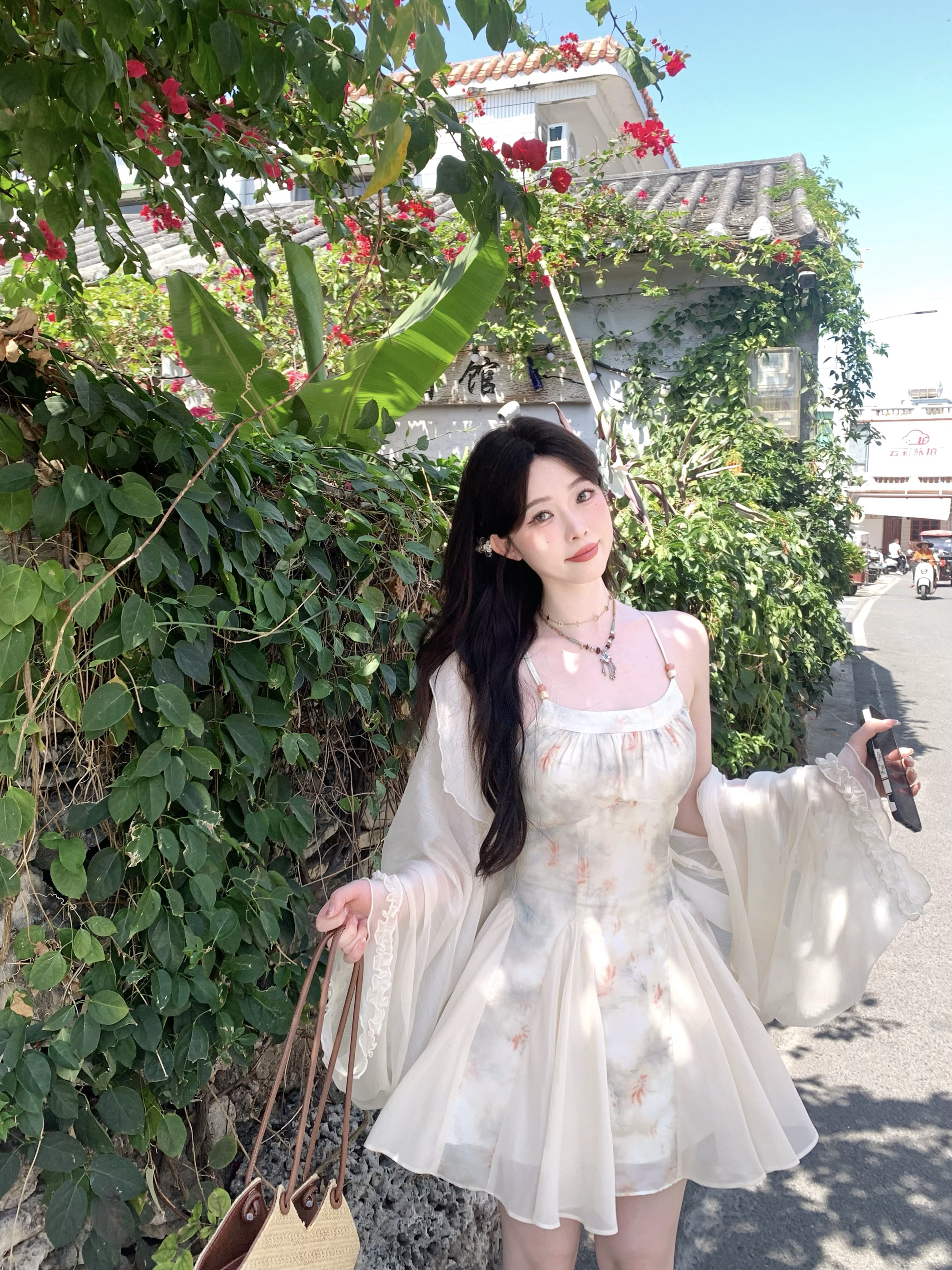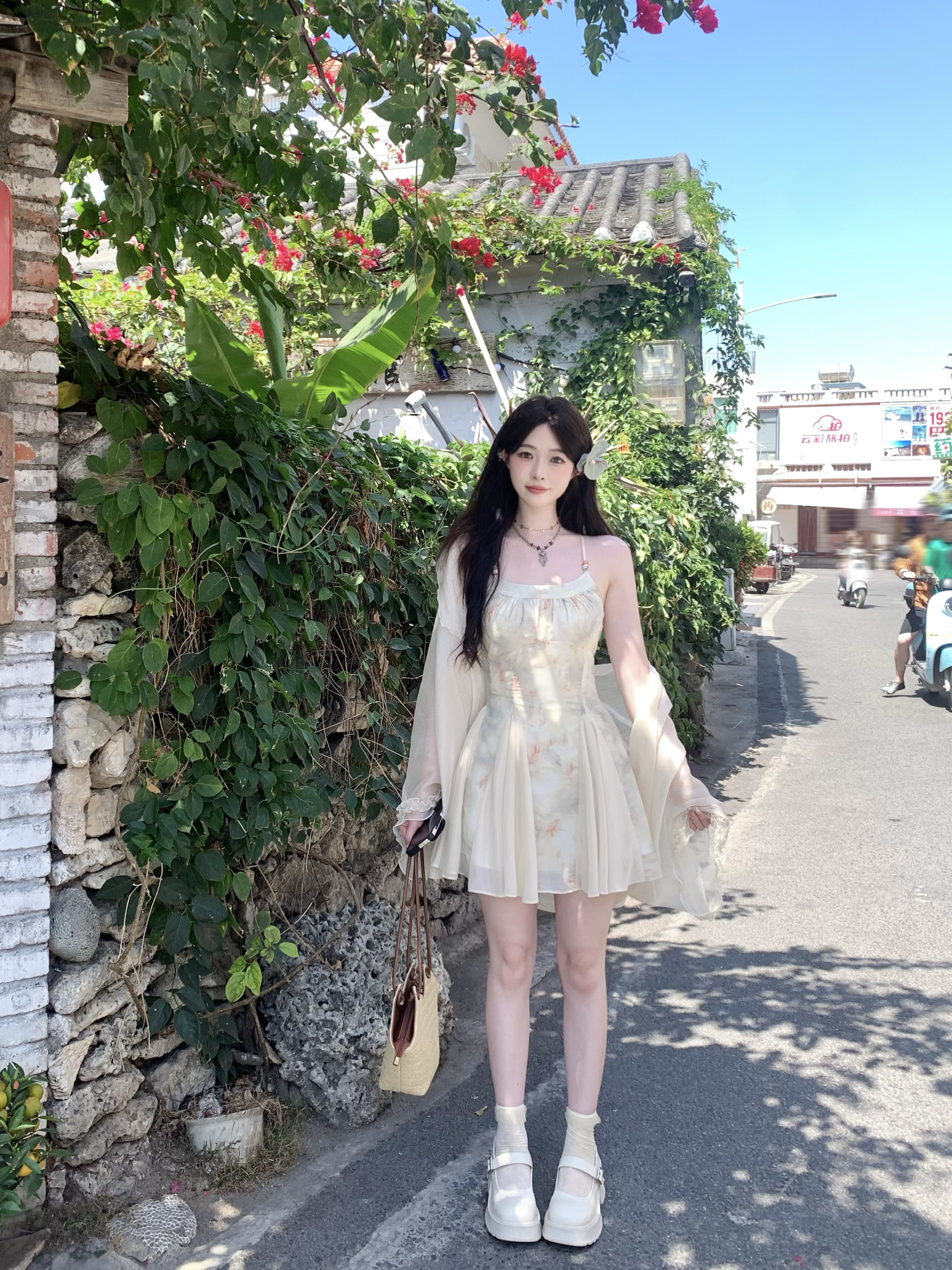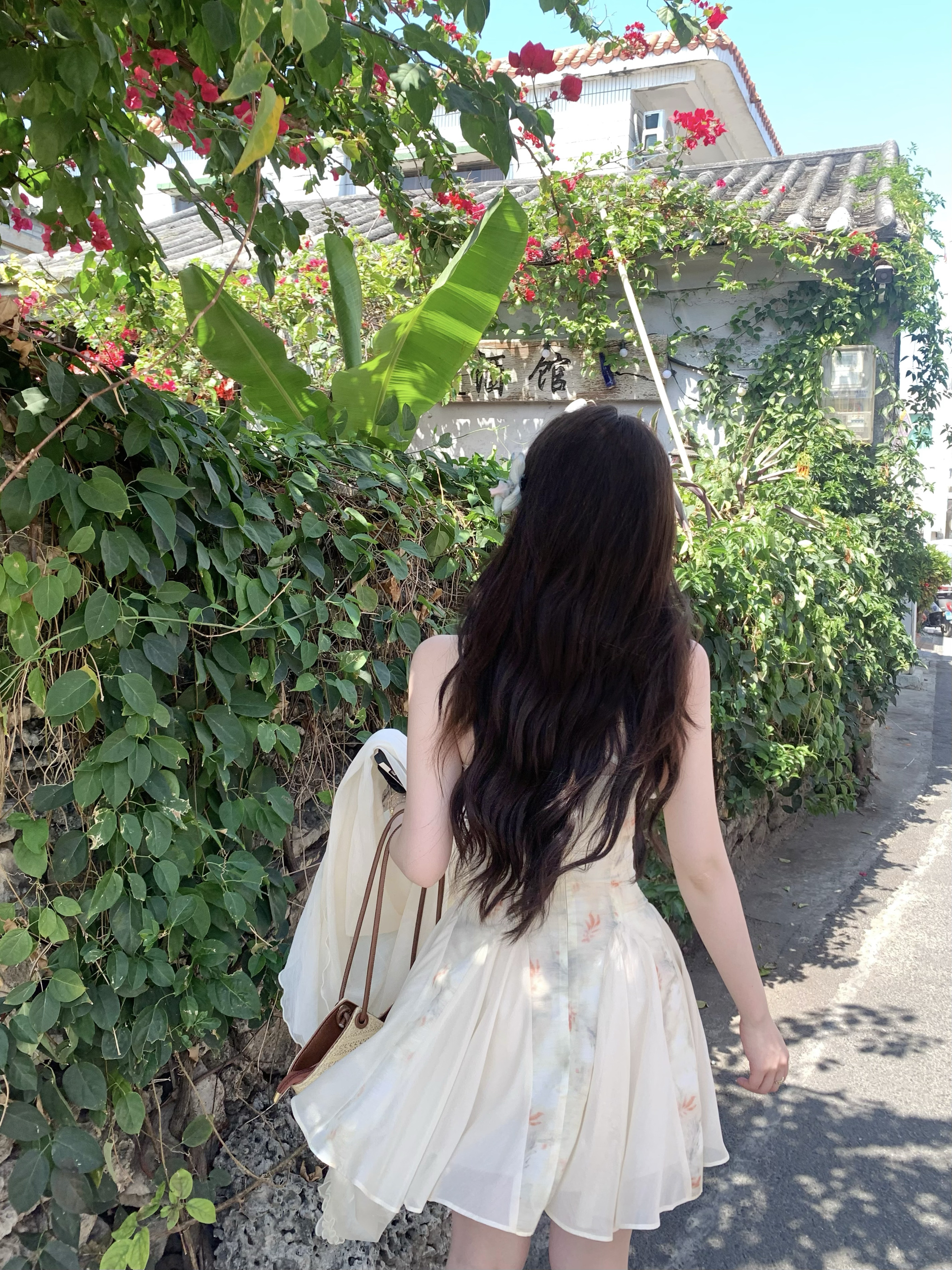 白里BAILISTUDIO梧桐落叶 印花吊带裙春夏气质温柔碎花连衣裙 春季