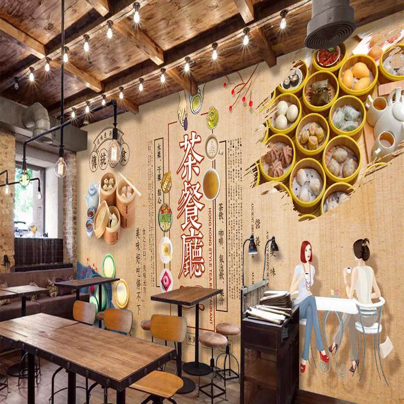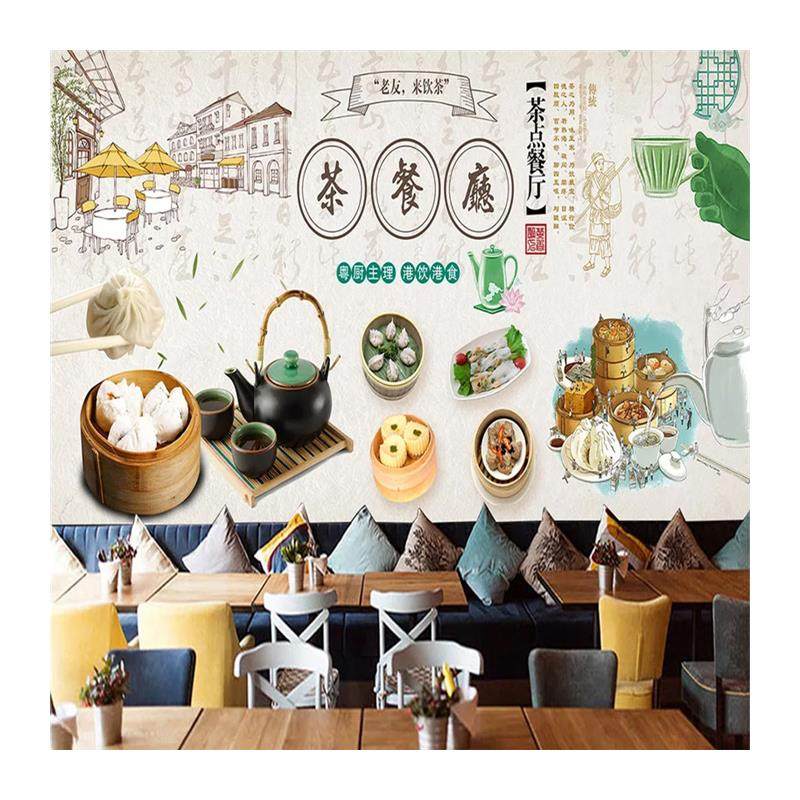 港式 点心背景墙纸壁纸 茶餐厅早点酒楼饭店墙布壁画 早茶粤式 广式
