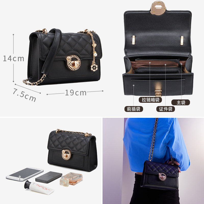 意尔康小方包包女2025新款 斜挎包质感菱格包百搭通勤包高级链条包
