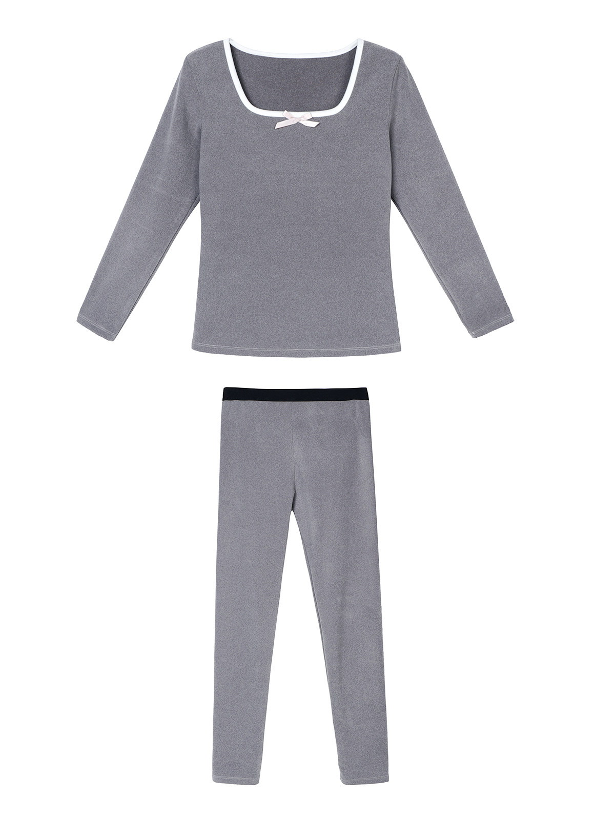 馨帮帮睡衣秋冬双面磨毛发热德绒保暖内衣塑身打底秋衣秋裤 女 套装