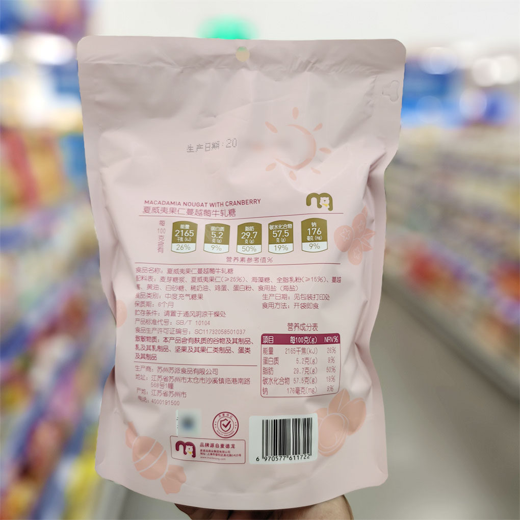 麦德龙代购 年货糖果零食 麦臻选夏威夷果仁蔓越莓牛轧糖450g袋装