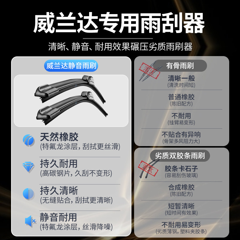 23年款 适用丰田威兰达雨刮器原装 专用无骨前后雨刷胶条