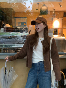 高级感复古针织开衫 慵懒风宽松毛衣外套外搭上衣 女秋冬2025新款