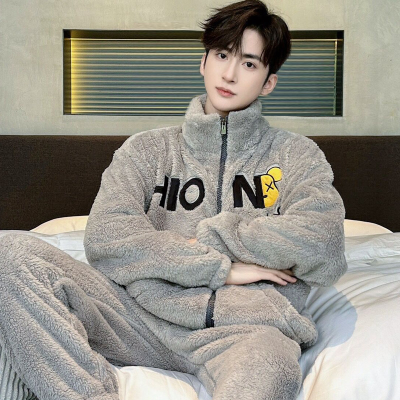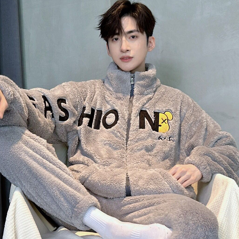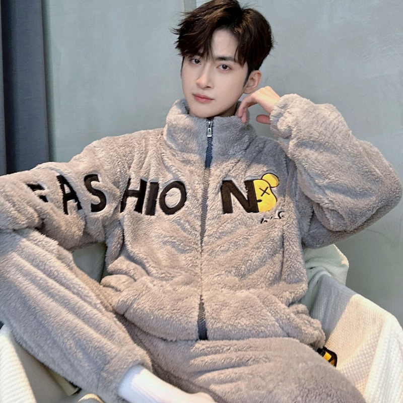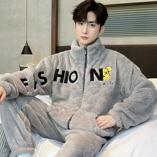 加绒加厚家居服套装 长毛绒青年男款 秋冬季 芬腾可安珊瑚绒睡衣男士