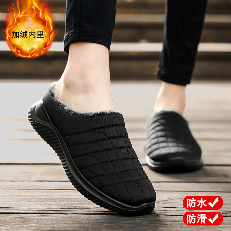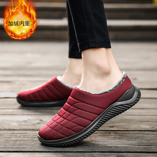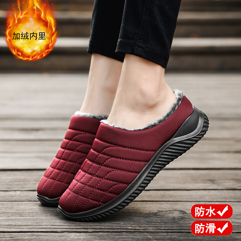 加绒保暖无后跟防水棉鞋 老人棉拖鞋 女冬老年人室内专用防滑半拖鞋