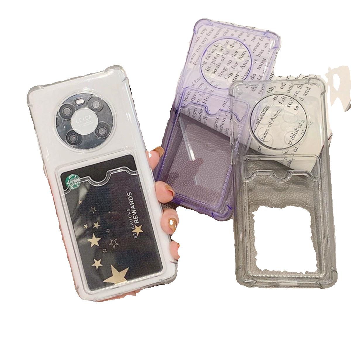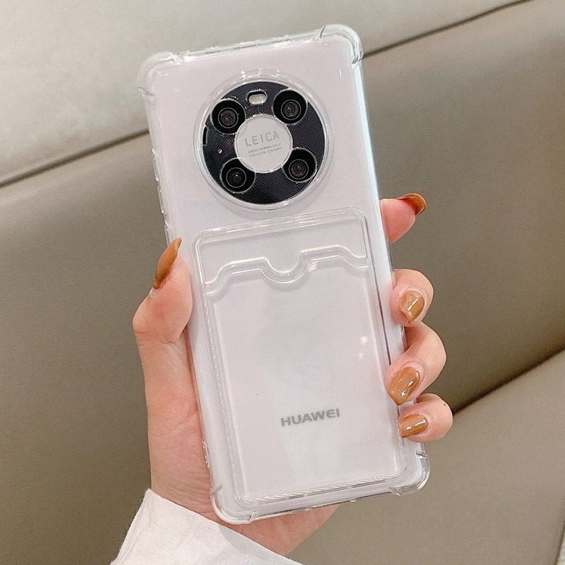 透明卡包一体适用华为mate60pro 手机壳卡槽matepro40插卡meta30por放卡证件P50e硅胶卡套全包软壳校园卡简约
