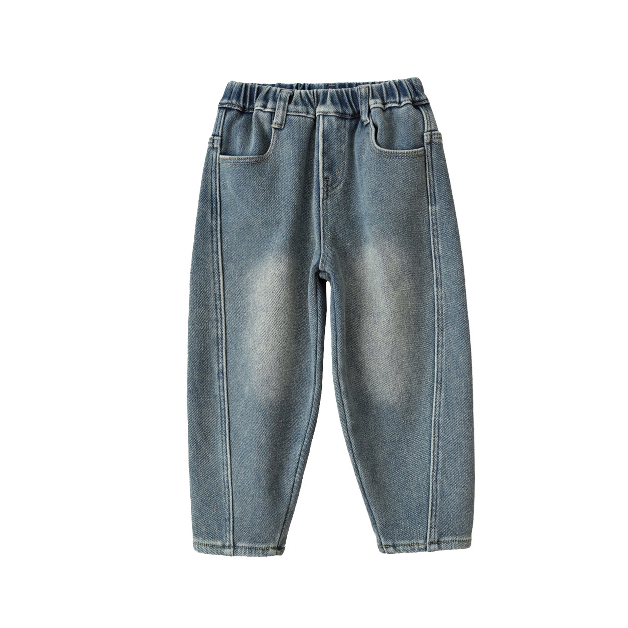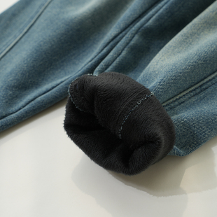 儿童水洗牛仔裤 冬款 男女童加绒老爹裤 山东网店 中大童 一体绒