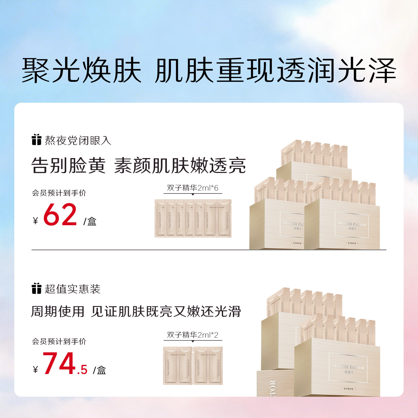 雅因子双子精华面部精华提亮肤色次抛熬夜补水正品 男女同款