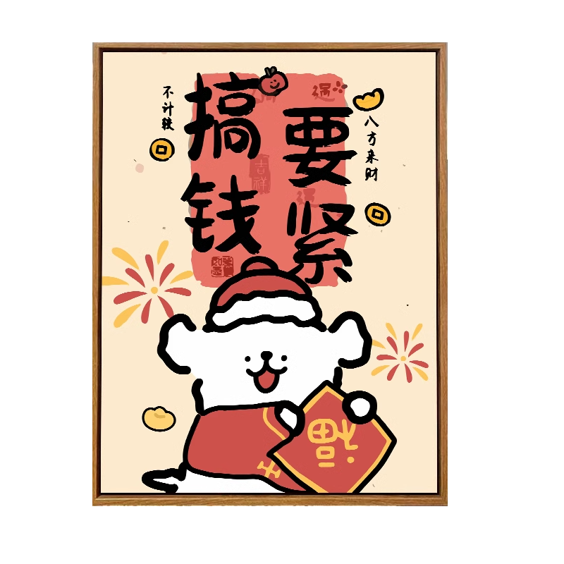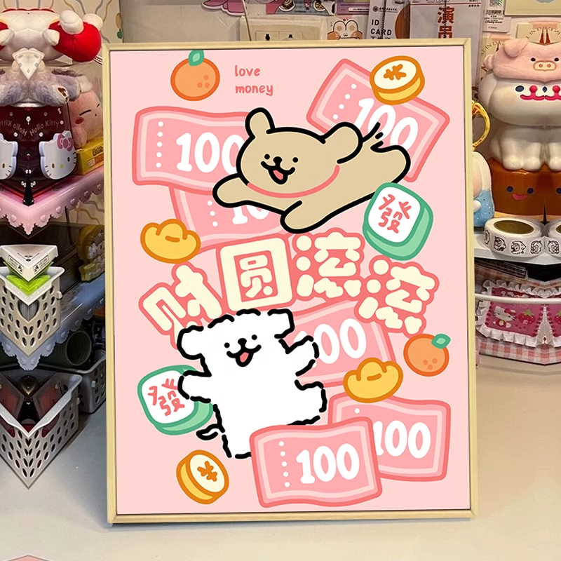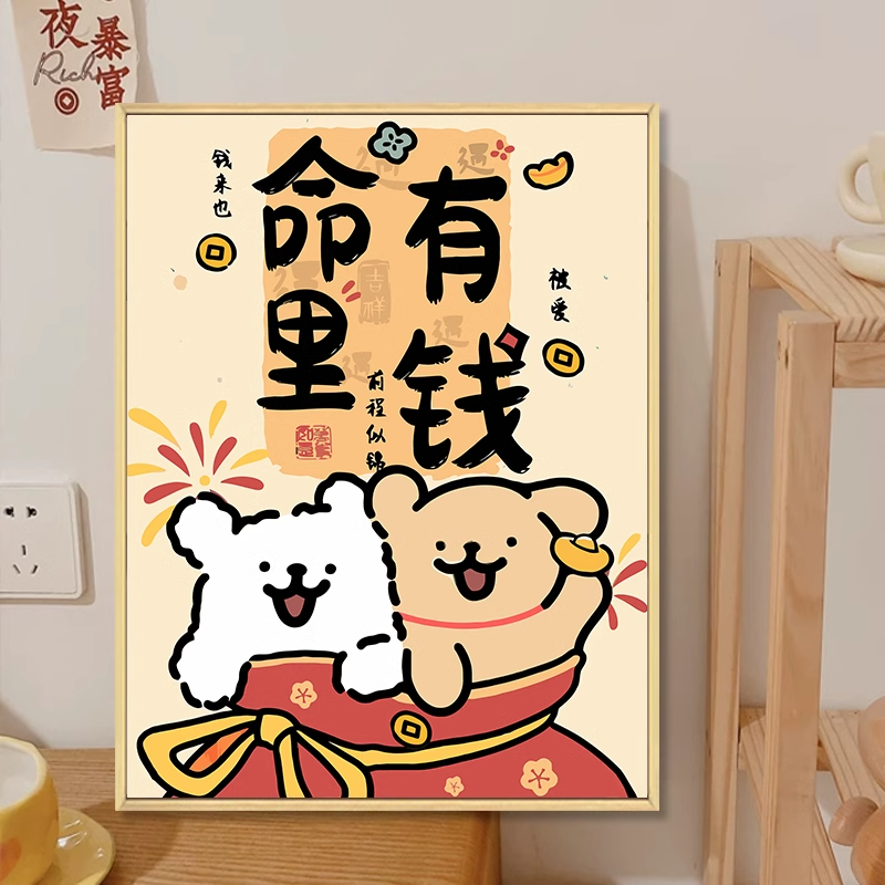 新春线条小狗数字油画diy填充填色手绘好寓意发财暴富丙烯油彩画