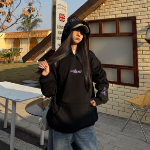 百搭情侣帽衫 Amoeba原创国潮字母刺绣加绒连帽卫衣美式 街头新款