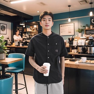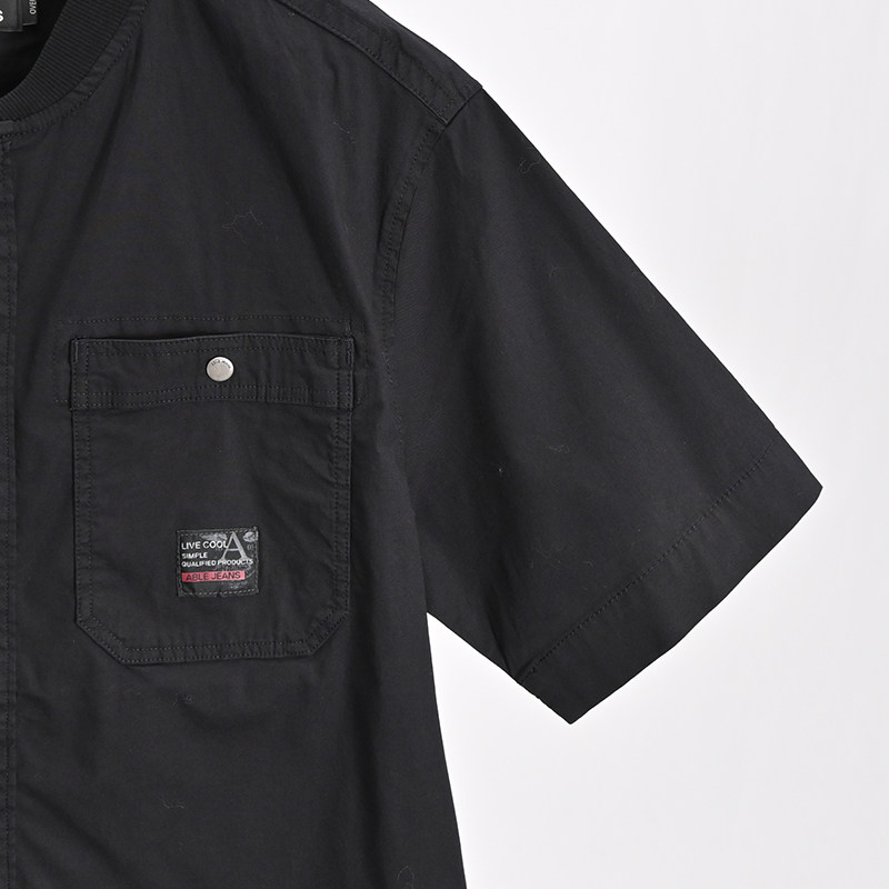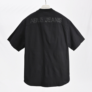 ABLE 福利夏季 衬衫 黑色男短袖 JEANS纯棉休闲衬衣宽松潮流青年 薄款