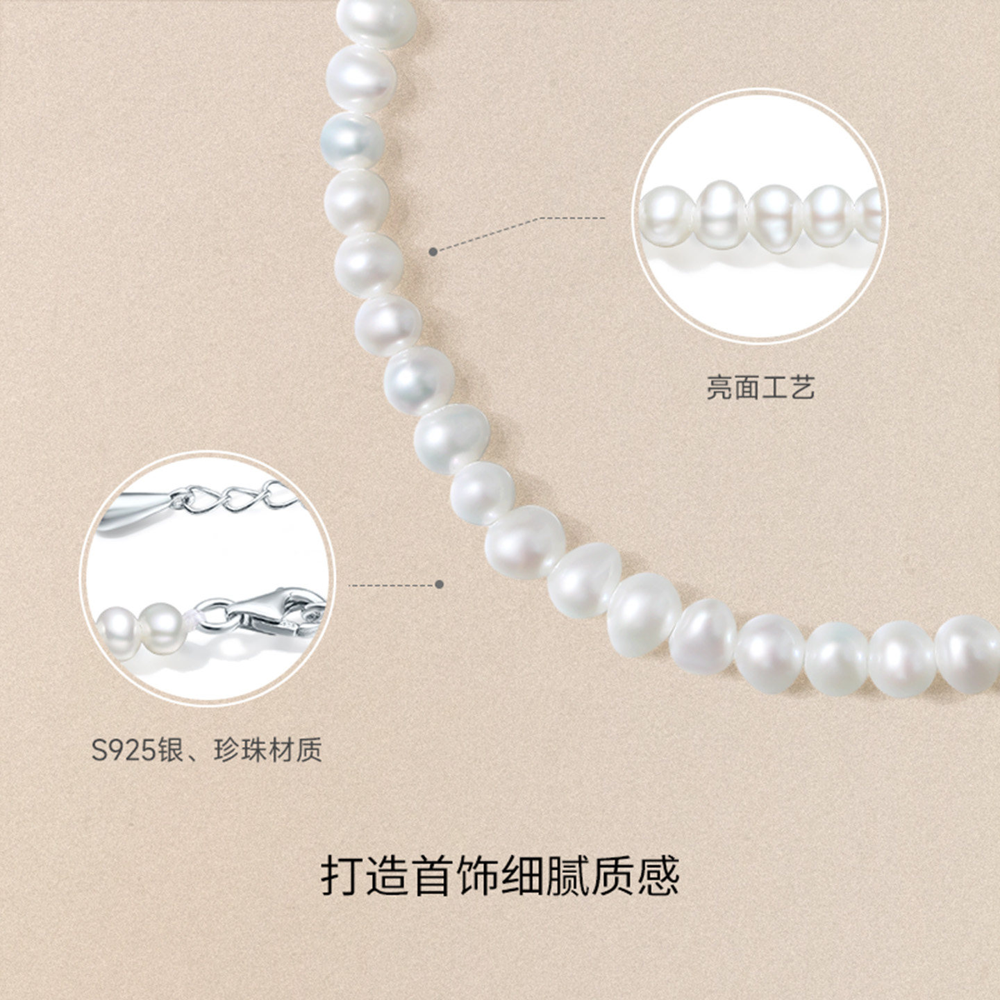 周六福S925珍珠手链优雅时尚 小米珠淡水珍珠手串送女友新年礼物