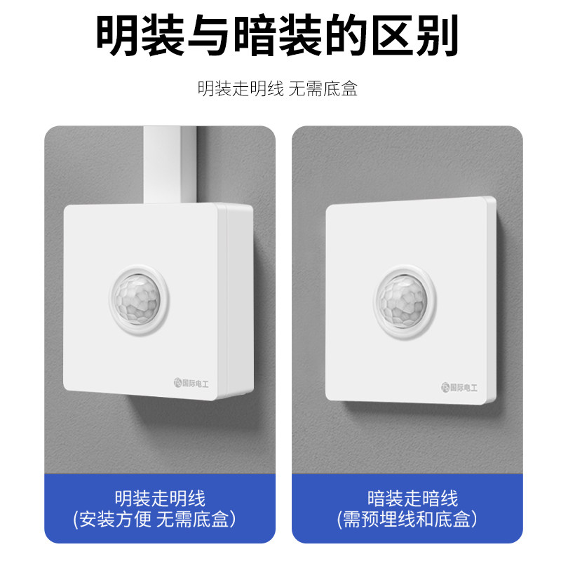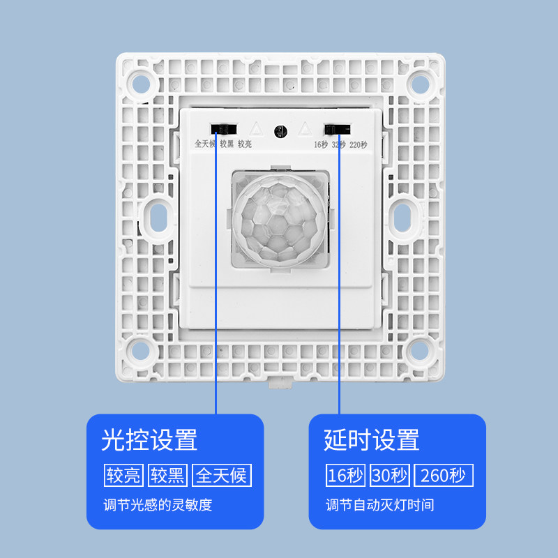 人体感应开关面板86型220V家用走廊楼道LED灯带延时红外线感应器