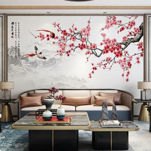 电视新影视花鸟梅花壁画墙布家壁纸装 客厅和简约墙纸背景8d 饰中式