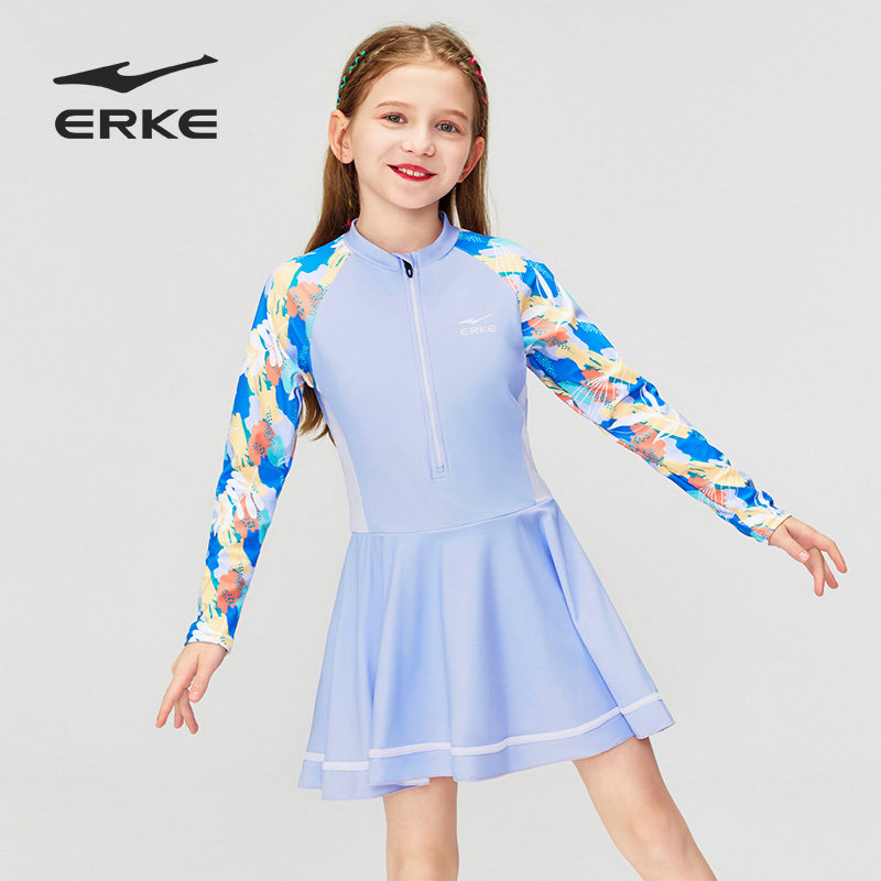 鸿星尔克儿童泳衣连体裙式 清仓 中大女童女孩游泳分体泳装 特价