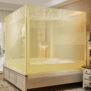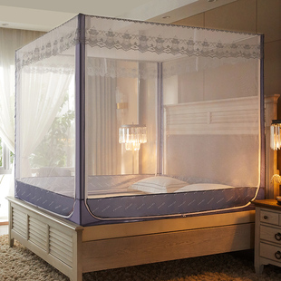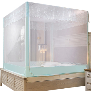 家用方形蚊帐大床三开门拉链回形无底拆洗方便加密厚1.9米长防摔