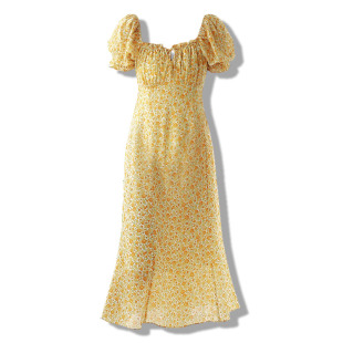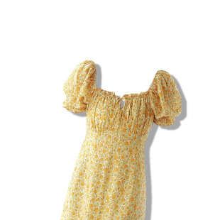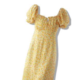 连衣裙复古方领洋气显瘦木耳边短袖 女装 雪纺碎花长裙 大码 胖mm夏装