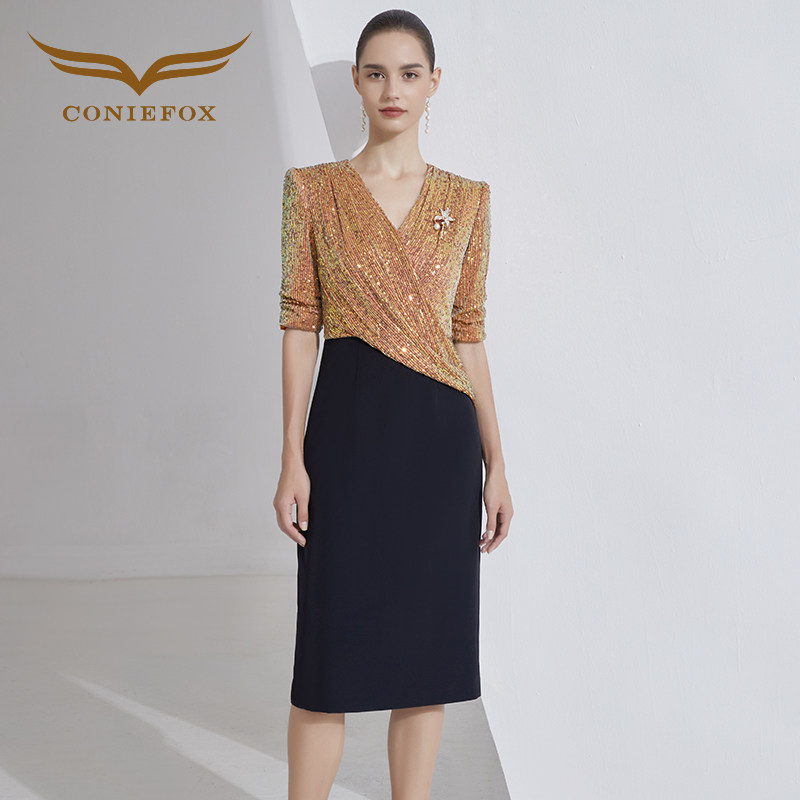 创意狐主持人礼服裙轻奢小众高端女小洋装 日常可穿礼裙名媛连衣裙
