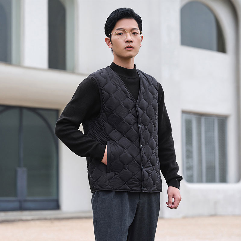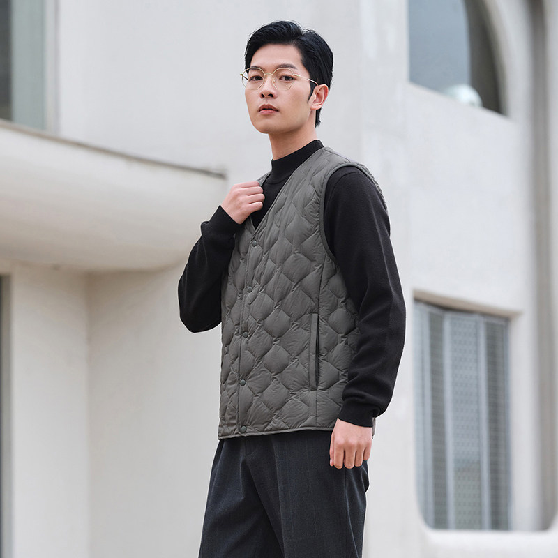 短款 轻薄时尚 v领外穿坎肩背心内胆暖外套 羽绒马甲男士 坦博尔秋季
