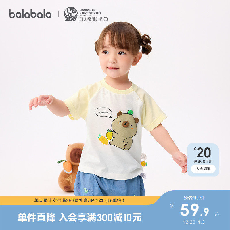 萌休闲百搭上衣 夏装 巴拉巴拉婴儿短袖 t恤宝宝上衣男女童2025新款