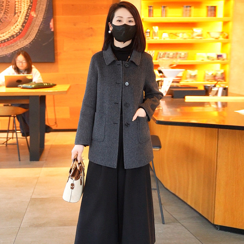 休闲小个子毛呢外套女中年宽松羊毛双面呢大衣 韩版 2025年春季 新款