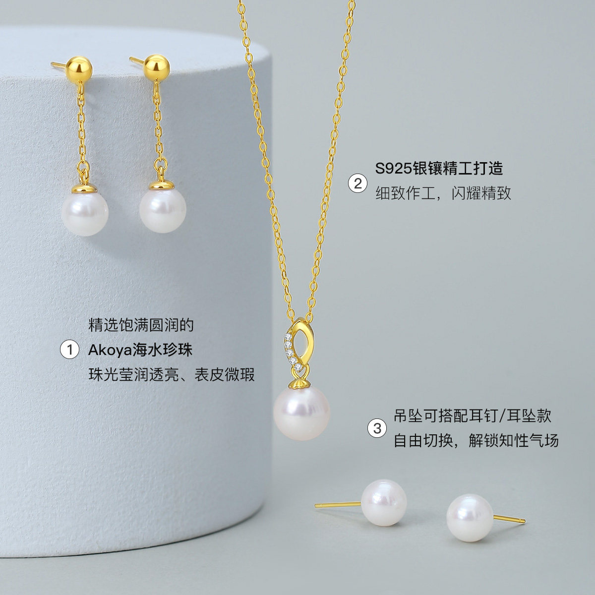 珍珠皇后 海水akoya珍珠吊坠项链耳坠耳钉S925银送女友礼物礼盒