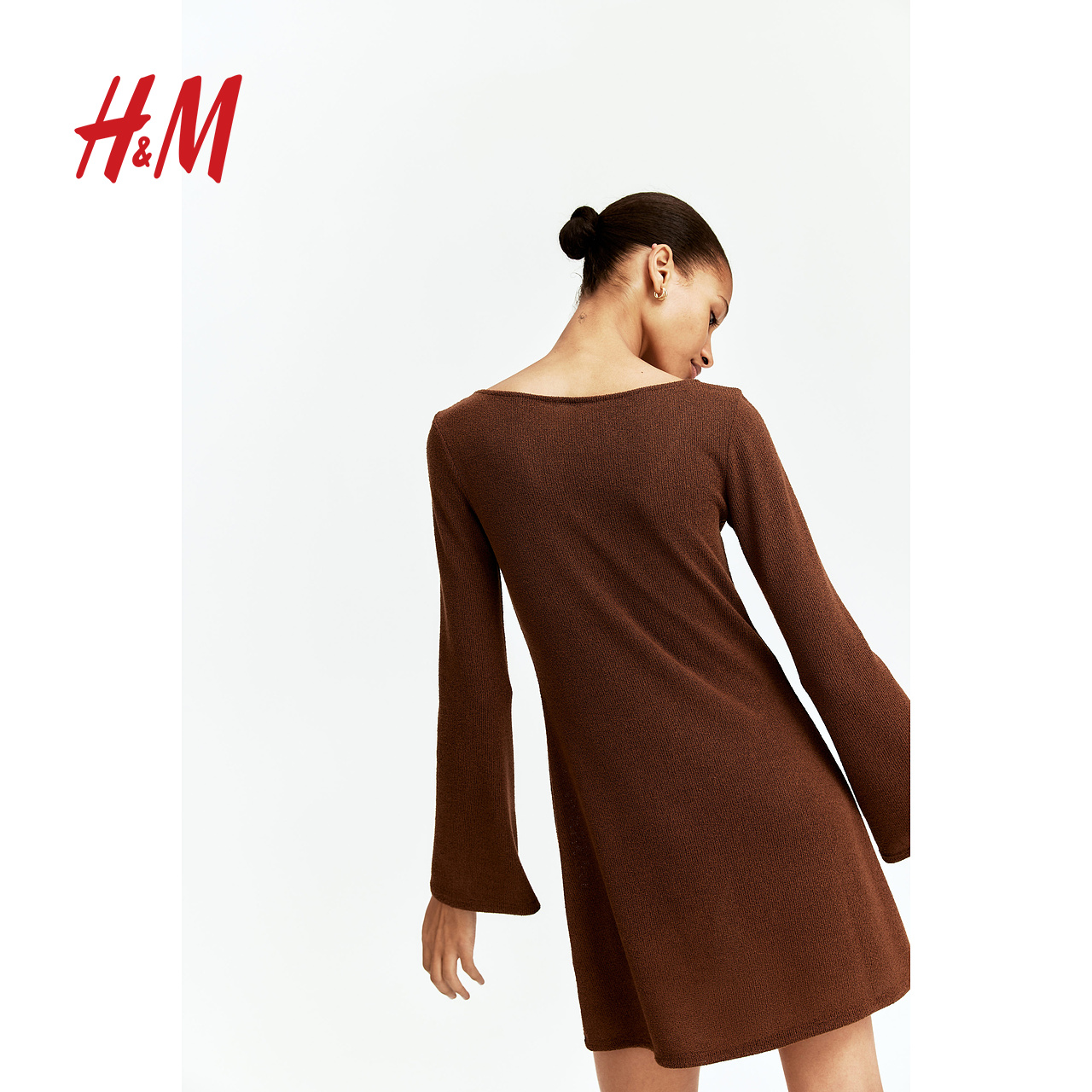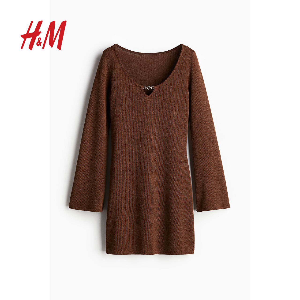 时尚 新款 喇叭裙摆针织连身裙1273542 连衣裙2025年冬季 HM女装