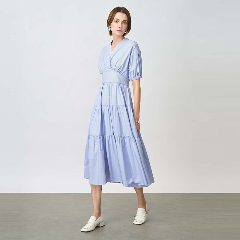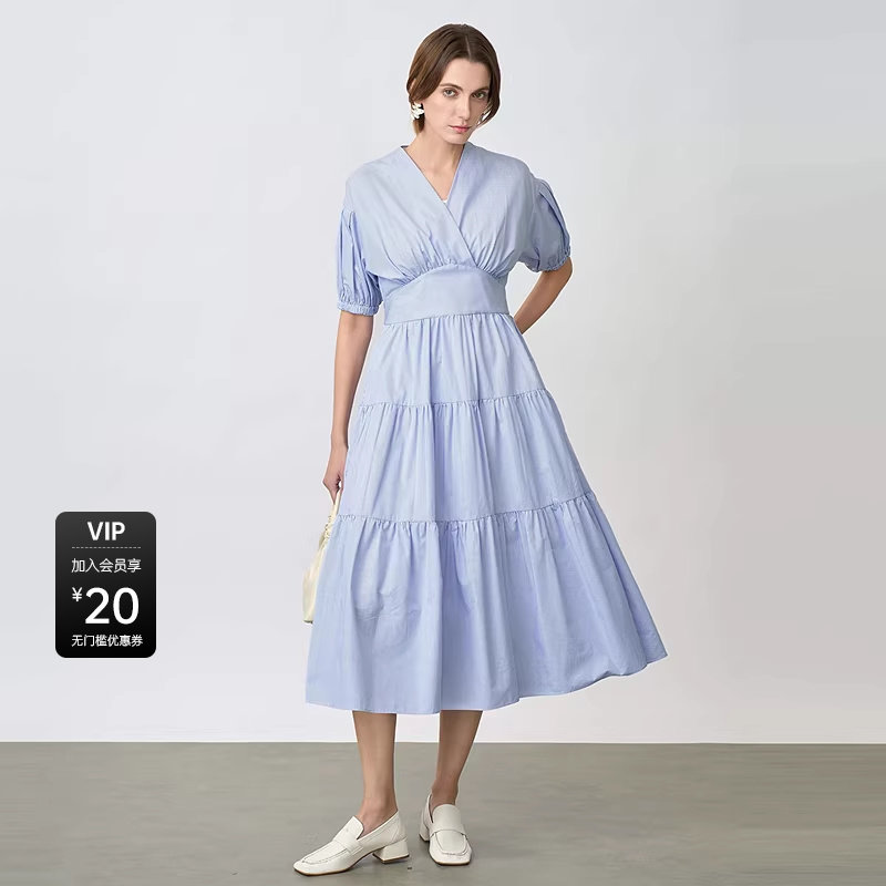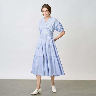 sdeer圣迪奥夏装 度假风V领条纹吊带两件套连衣裙S25261205 女装