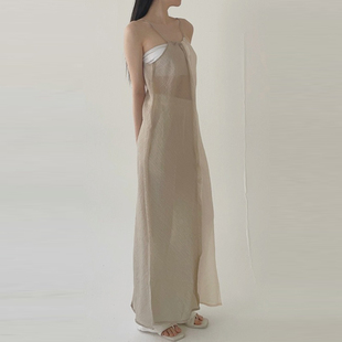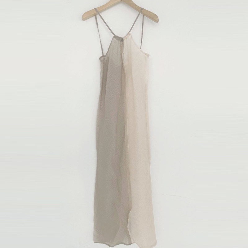 two dress双色微透长款 tone through 吊带连衣裙 see adelio韩代