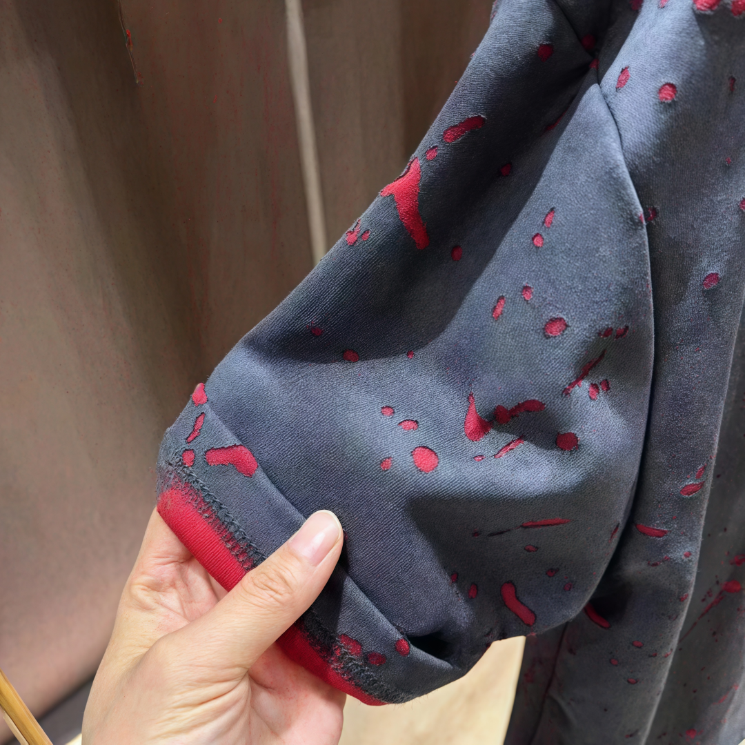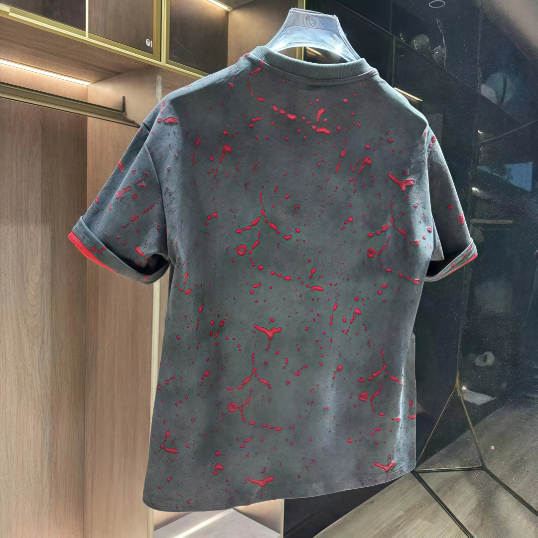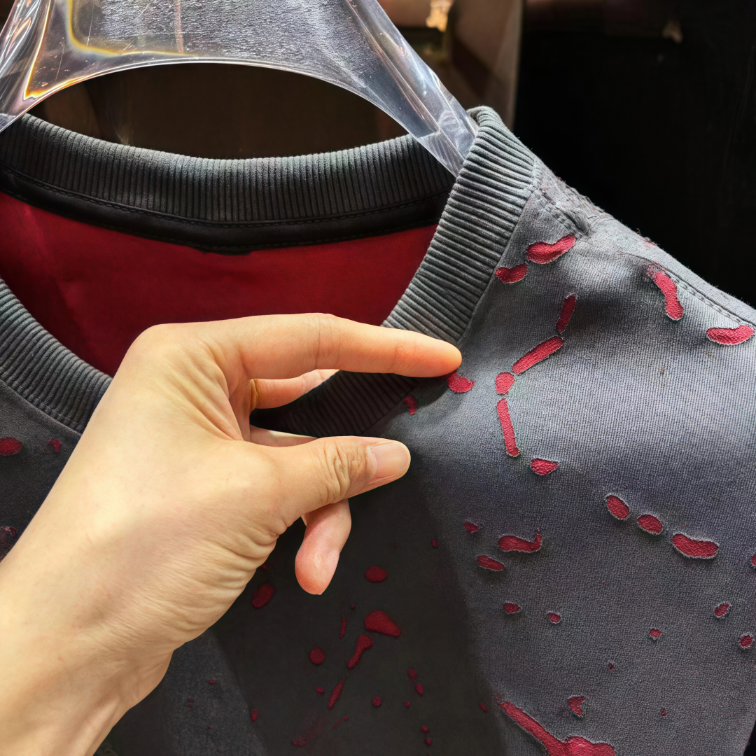 百搭男圆领体恤上衣潮 时尚 2025早秋新款 欧货潮牌破洞裂纹设计短袖