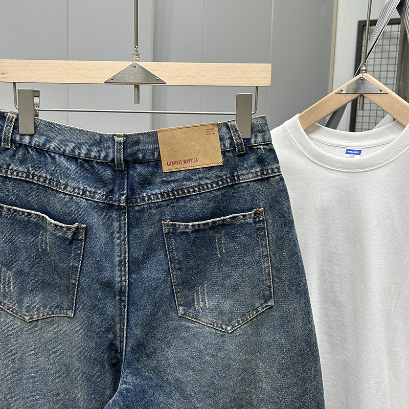 裤 三福2025冬季 街头潮酷直筒阔腿长裤 解构设计牛仔裤 子510091 男士