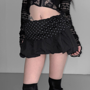 复古波点接拼设计松紧腰A字蓬蓬半身短裙 街头个性 Exclusive type