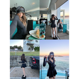 Lin 连帽外套层次半身裙套装 白女日常 防晒修身 upf50 Xinlei