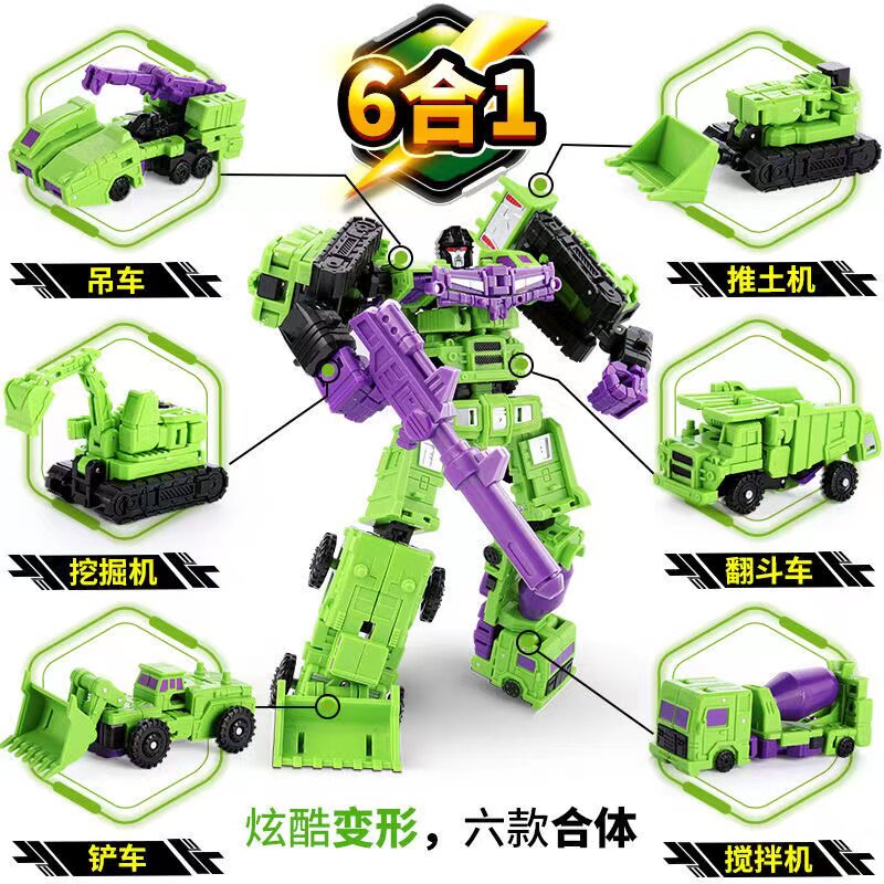 变形玩具小力神大力神六合体组合金刚工程车挖掘机机器人男孩模型