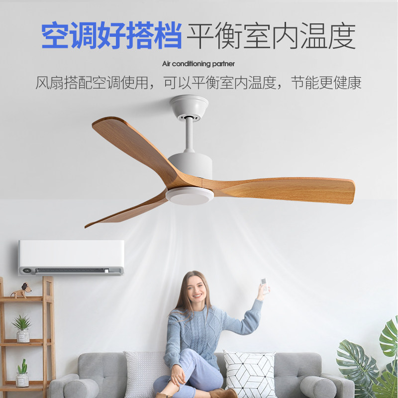 卧室吊扇灯家用客厅餐43厅风扇吊音灯一体新中山装 静隐形风扇 饰款