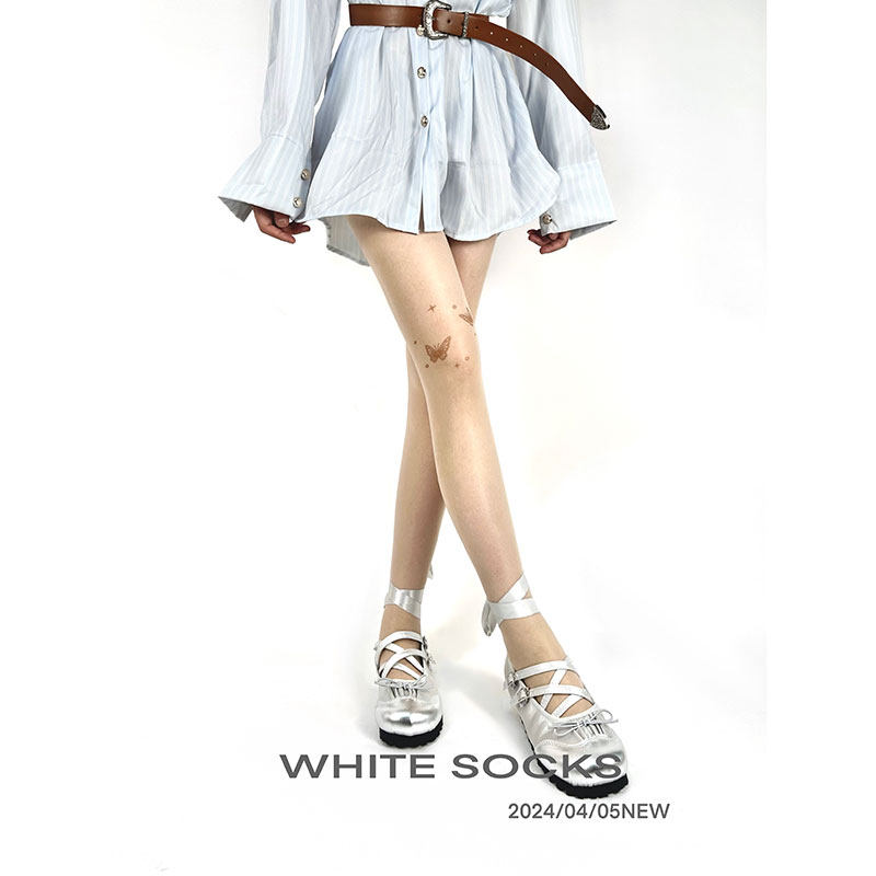 贴肤芭蕾风美腿丝袜 春夏纯欲蝴蝶印花y2k丝袜薄款 white socks新款