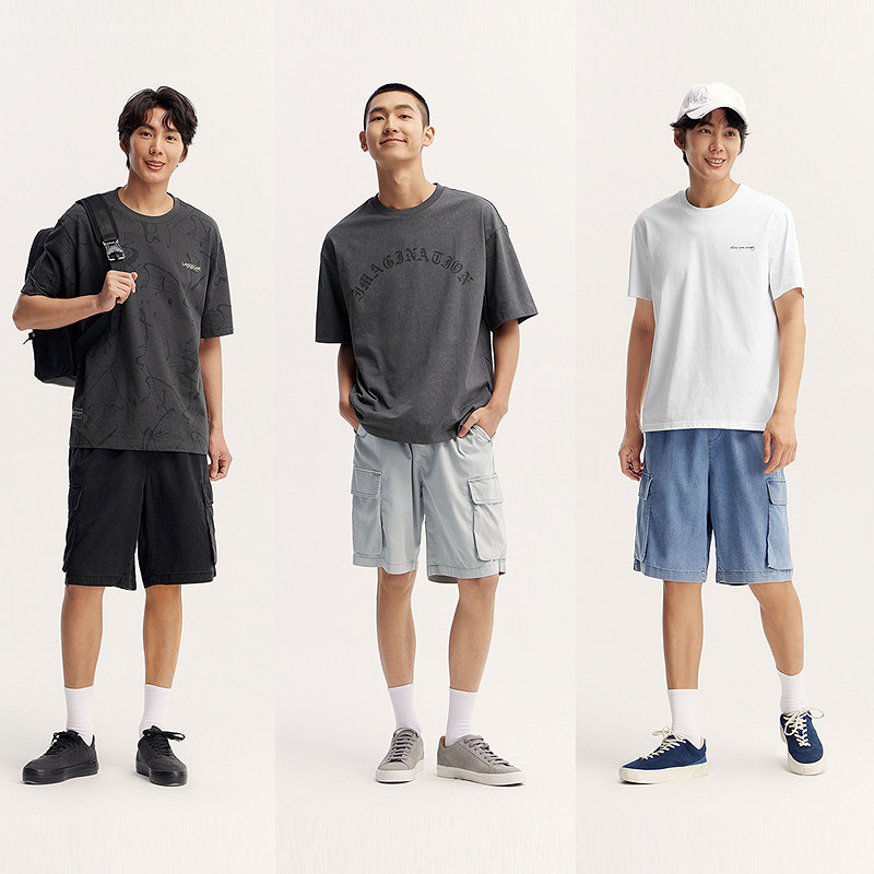 森马牛仔中裤 五分裤 男复古水洗工装 oversize夏季 潮 短裤 森柔牛仔