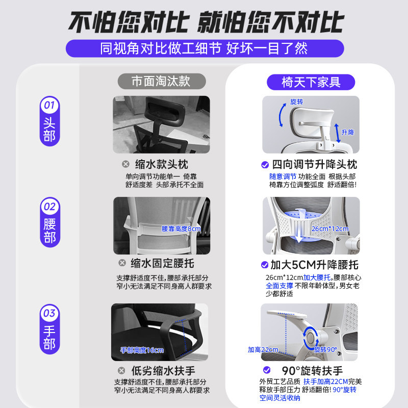 人体工学电脑椅子舒适家用透气久坐护腰靠背座椅办公学习书桌宿舍
