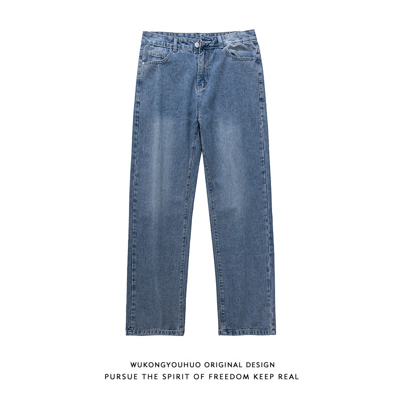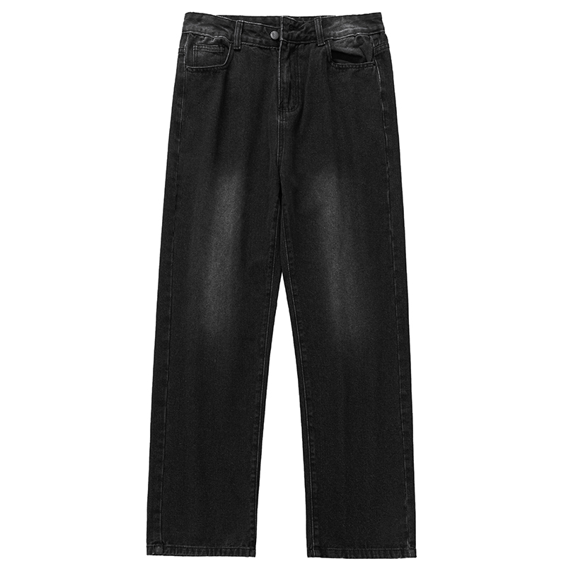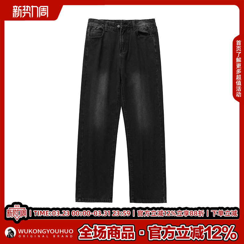悟空有货潮牌街头基础百搭黑色牛仔裤 男宽松直筒阔腿百搭水洗长裤